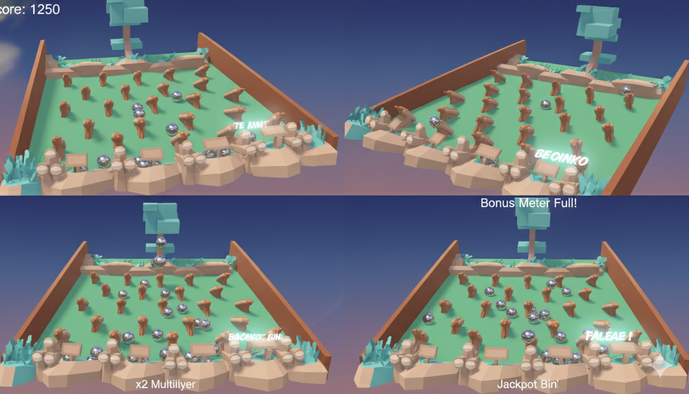 In the advanced version, players can control a ball launcher that moves horizontally to aim their shots and earn points based on where the balls land.